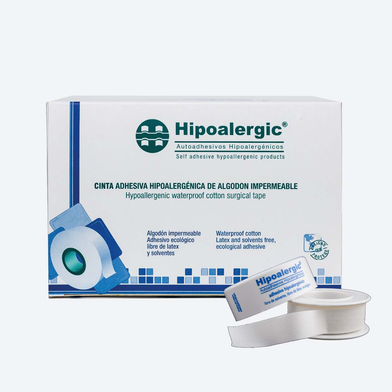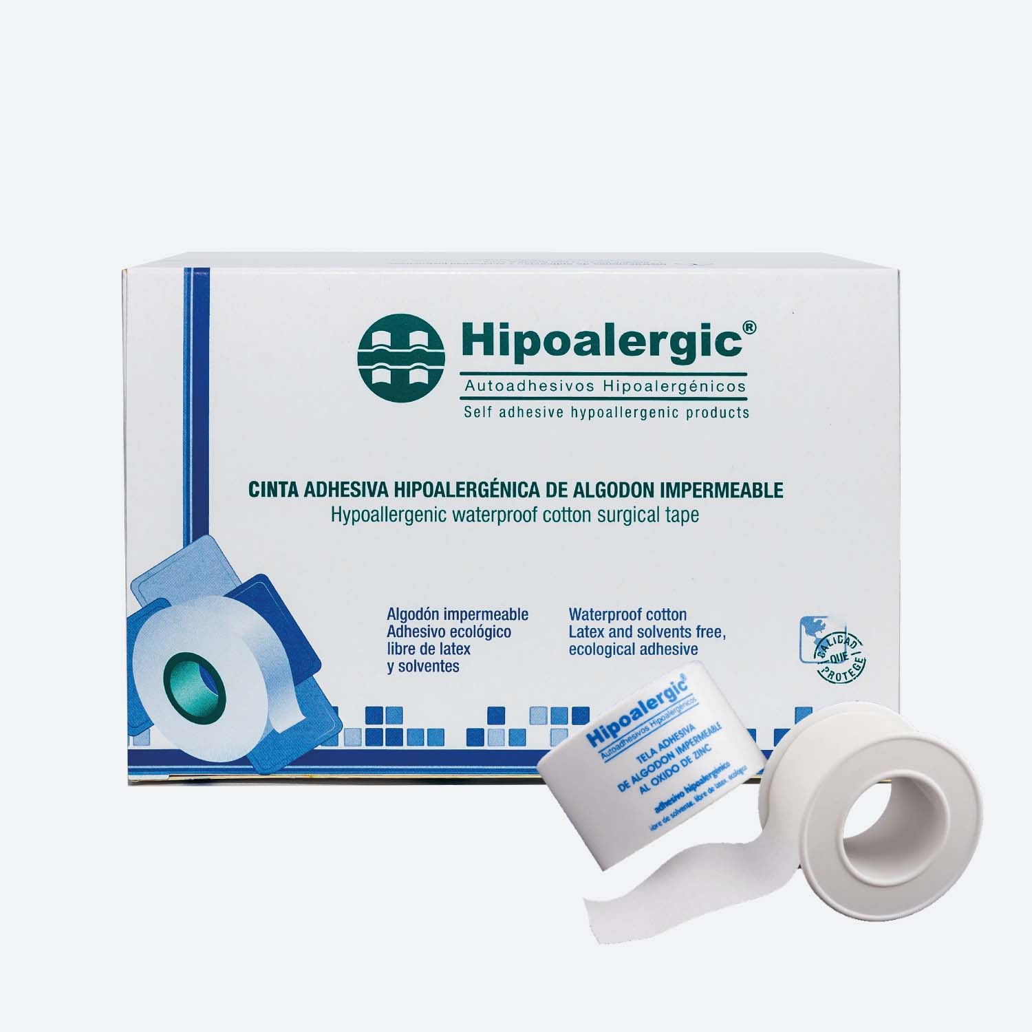 Cinta médica de algodón impermeable recubierta uniformemente con adhesivo hipoalergénico libre de látex. Excelente adherencia en cualquier tipo de piel, no deja marcas ni residuos. Máxima resistencia a la tracción.