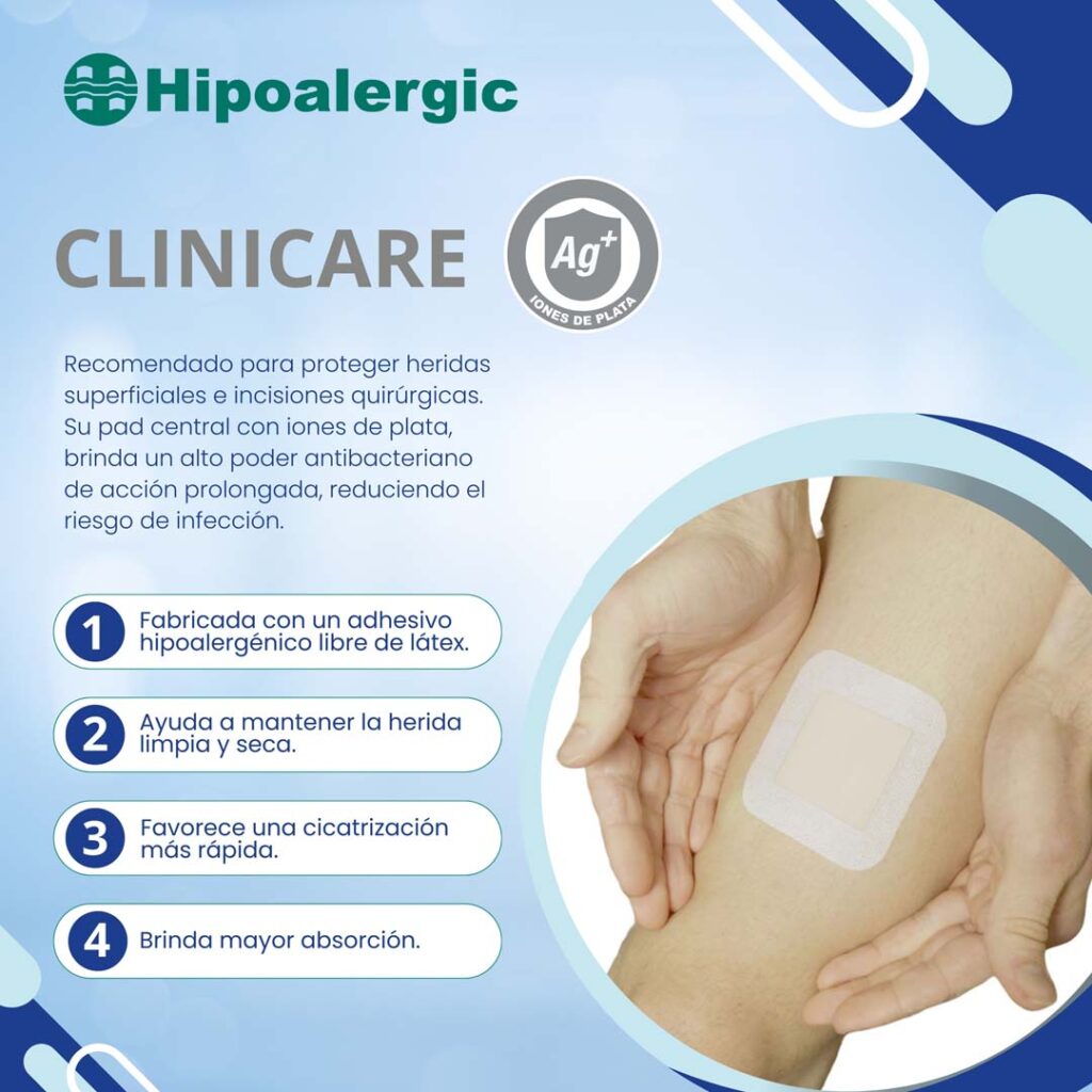 Especialmente desarrollado para la protección de heridas post-quirúrgicas. Su pad central con iones de plata, brinda un alto poder antibacteriano de acción prolongada, reduciendo el riesgo de infección de la herida y acelerando el proceso de cicatrización.