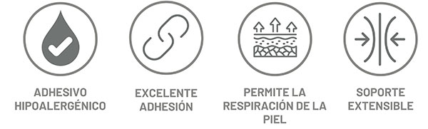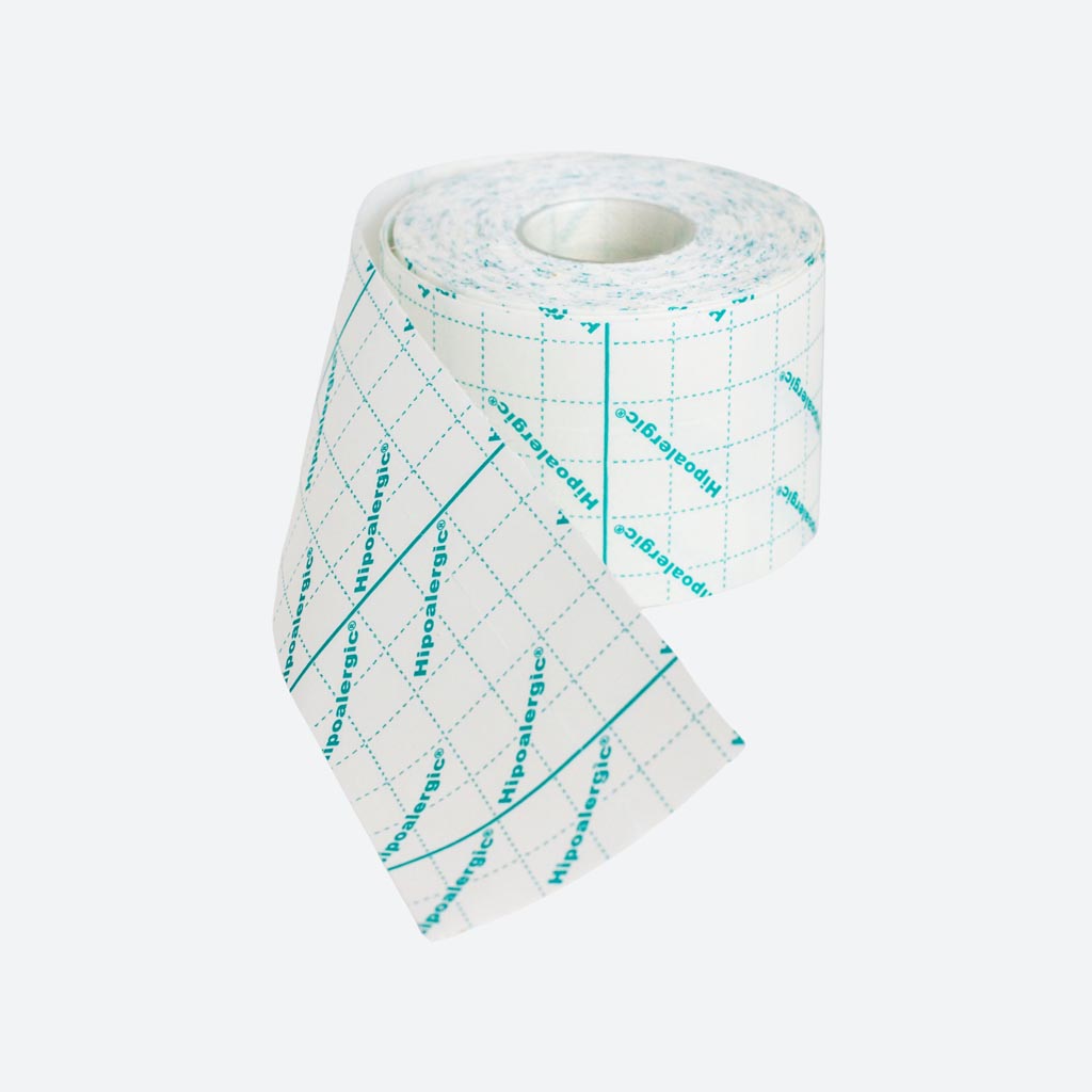 Cinta médica de no tejido elástico macroporoso recubierto uniformemente con un adhesivo hipoalergénico libre de látex. Excelente adherencia en cualquier tipo de piel, no deja marcas ni residuos. Posee un papel protector siliconado que facilita el corte, dosificación y aplicación debido a las cuadrículas impresas.