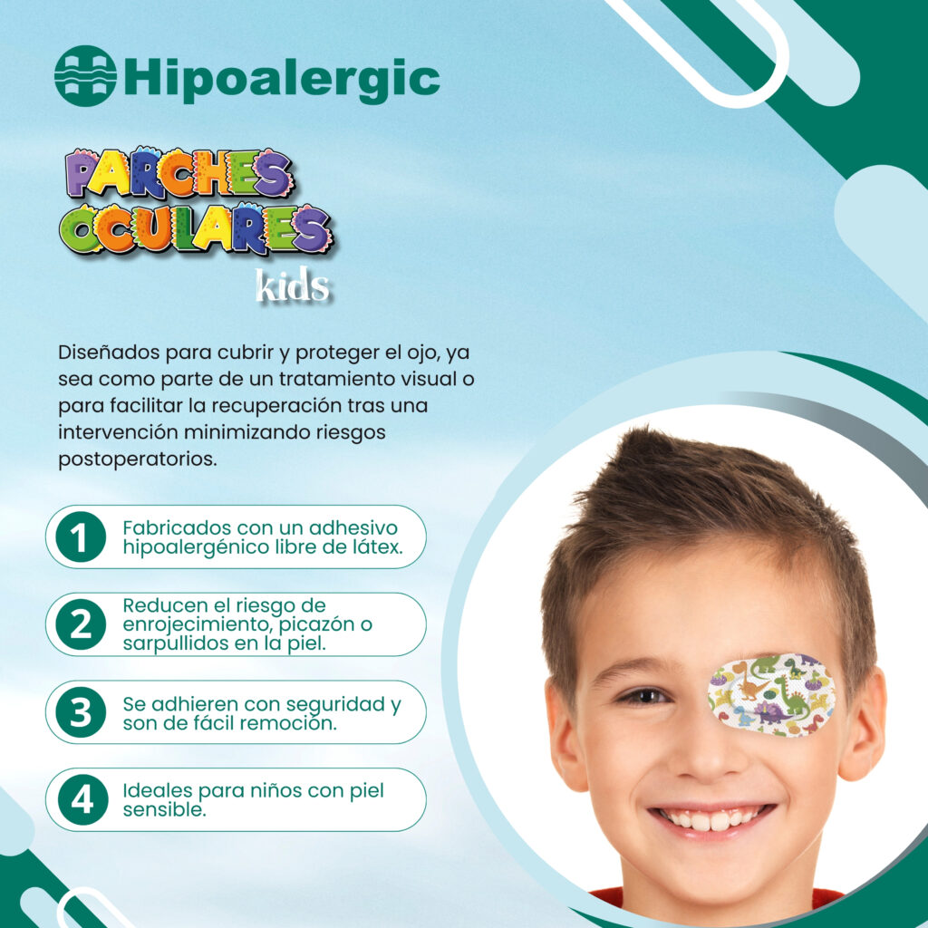Apósito recubierto uniformemente con un adhesivo hipoalergénico libre de látex. Excelente adherencia en cualquier tipo de piel, no deja marcas ni residuos. Posee un centro antiadherente que cubre y protege el ojo.